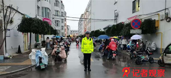 期间,民辅警重点驻守辖区人流车流密集的路口路段,尤其是学校周边,在高峰期,执勤交警站在雨中,通过标准的手势指挥车辆有序通行,同时及时对过往车辆开展分流疏导,全力保障主要交通路口不发生拥堵,为人民群众出行营造畅通、安全、有序、和谐的道路交通环境。同时,在降雨过程中,交警指挥中心通过视频监控巡查的方式,实时掌握道路积水情况和交通量变化。在易积水、易拥堵路段,大队增派固定警力,通过巡逻喊话、警报提示、警灯警示等措施,指挥车辆绕行,提醒过往车辆驾驶员控制车速,做到谨慎驾驶、有序通行。
