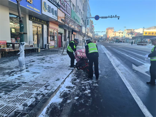行动中,民辅警结合兴华街商铺密集、居民出行集中的特点,采取“劝导为主、处罚为辅、教育引领”的原则,对道路两侧、公交站台旁、人行道上随意停放的电动自行车进行集中清理。针对未按规定停放在划线区域、占用机动车道、堵塞消防通道及人行盲道的车辆,民警首先通过电话联系车主,耐心劝导其规范停放;对联系不上车主或现场无法立即挪移的车辆,依法进行拖移并妥善存放,同时做好登记记录,方便车主后续认领。同时,民警还向电动自行车驾驶人普及了冬季骑行的防护知识,提醒大家减速慢行,注意观察路况,避免因车辆乱停引发剐蹭、拥堵等问题。